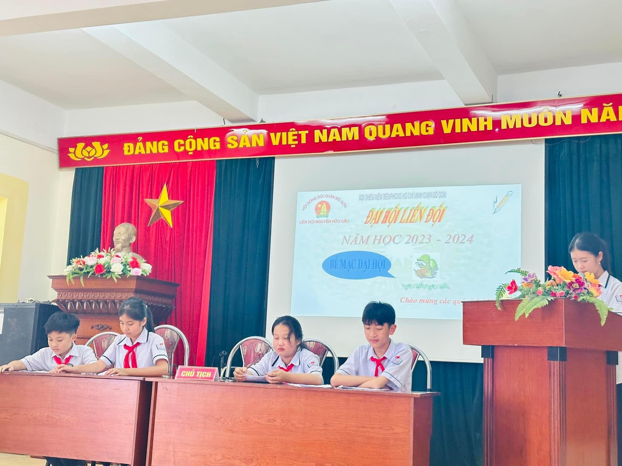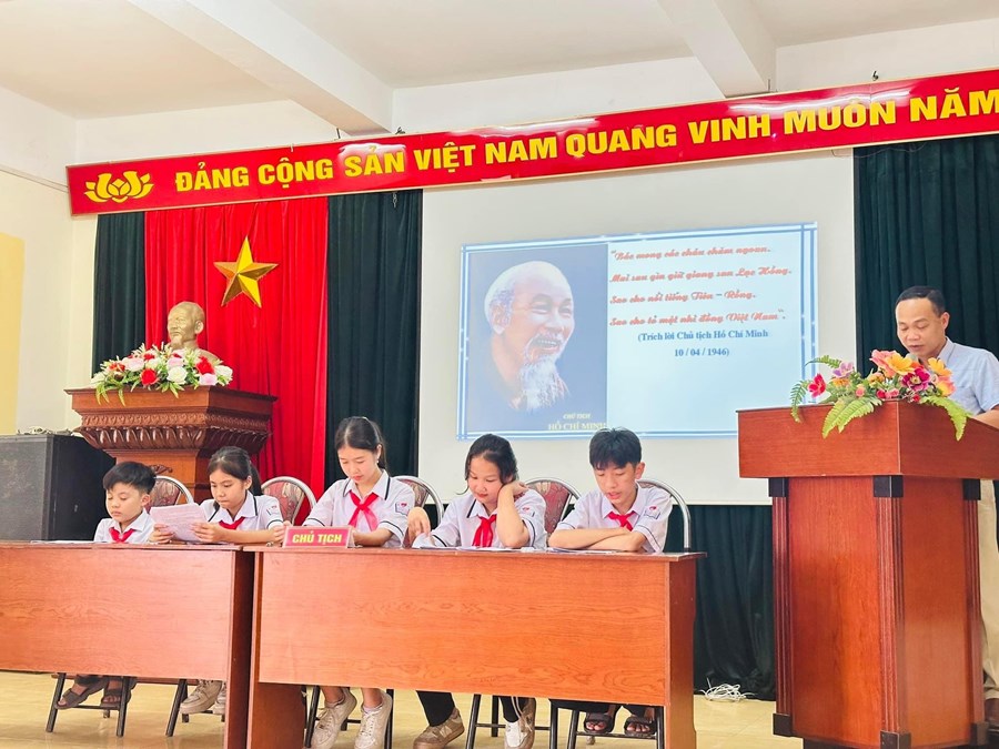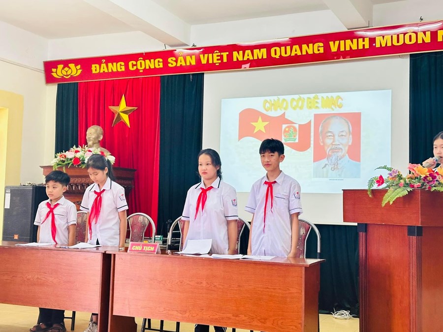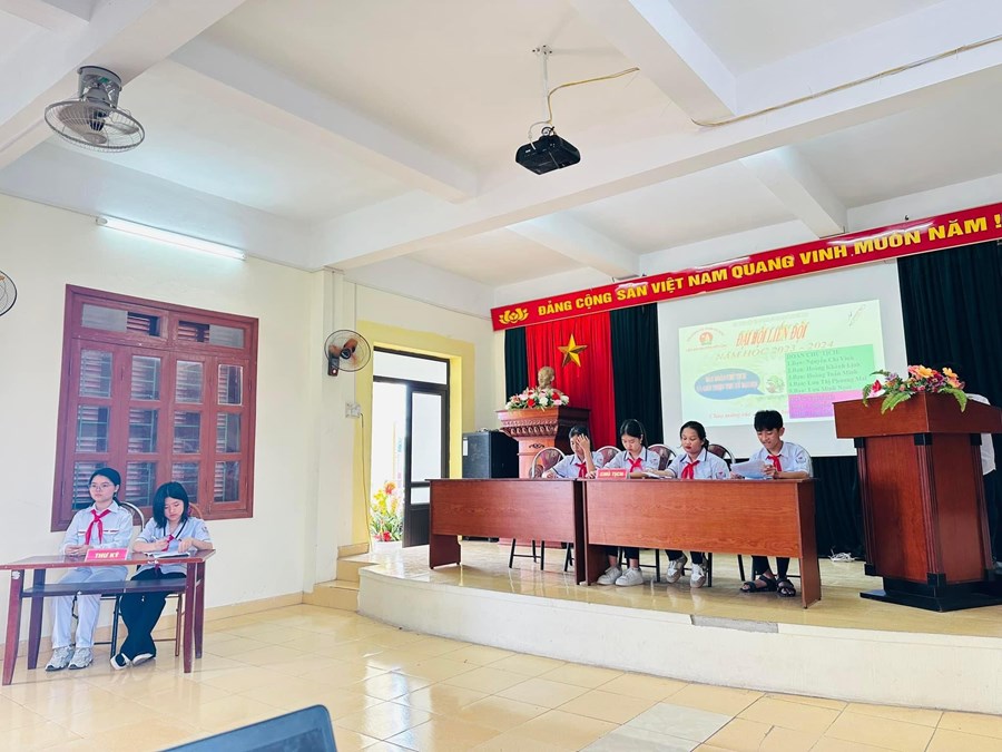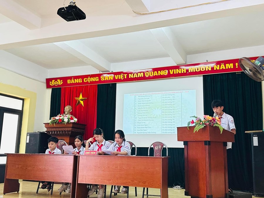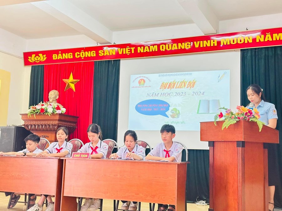 - Trong đại hội, đoàn chủ tịch báo cáo kết quả thực hiện công tác Đội năm học 2022 - 2023 và đề ra phương hướng hoạt động cho năm học 2023 - 2024.