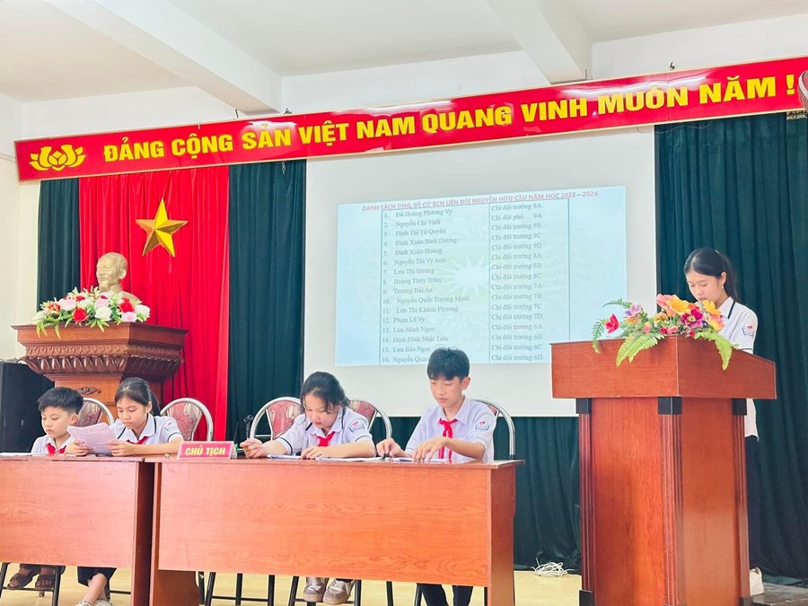 - Ban chỉ huy cũ nhiệm kỳ 2022 - 2023 tuyên bố hết nhiệm kỳ, đại hội tiến hành bầu Ban chỉ huy Liên đội mới. Qua tiến hành bầu cử nghiêm túc, khẩn trương đại hội đã bầu ra 16 bạn đội viên xuất sắc vào BCH Liên đội năm học 2023 - 2024.🌹🍀🍀🌻🌺