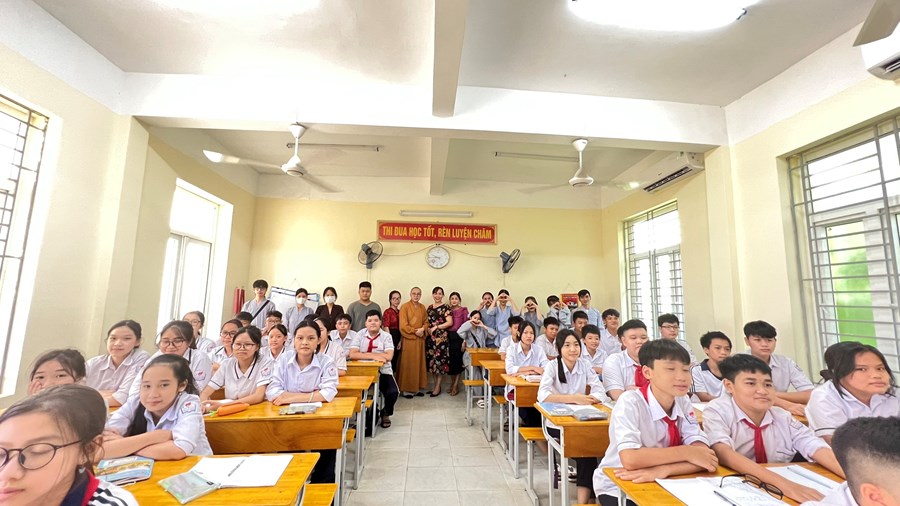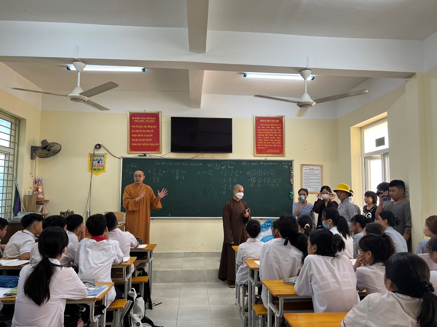 Thay mặt tập thể lãnh đạo, giáo viên và các em học sinh, nhà giáo Nguyễn Thị Kim Thuý - Hiệu trưởng nhà trường đã gửi tới Đại đức Thích Giác Hiệu (trụ trì chùa Hang, Đồ Sơn) lời cảm ơn chân thành, sâu sắc nhất, chúc thầy và các chư tăng, phật tử thật nhiều sức khoẻ!