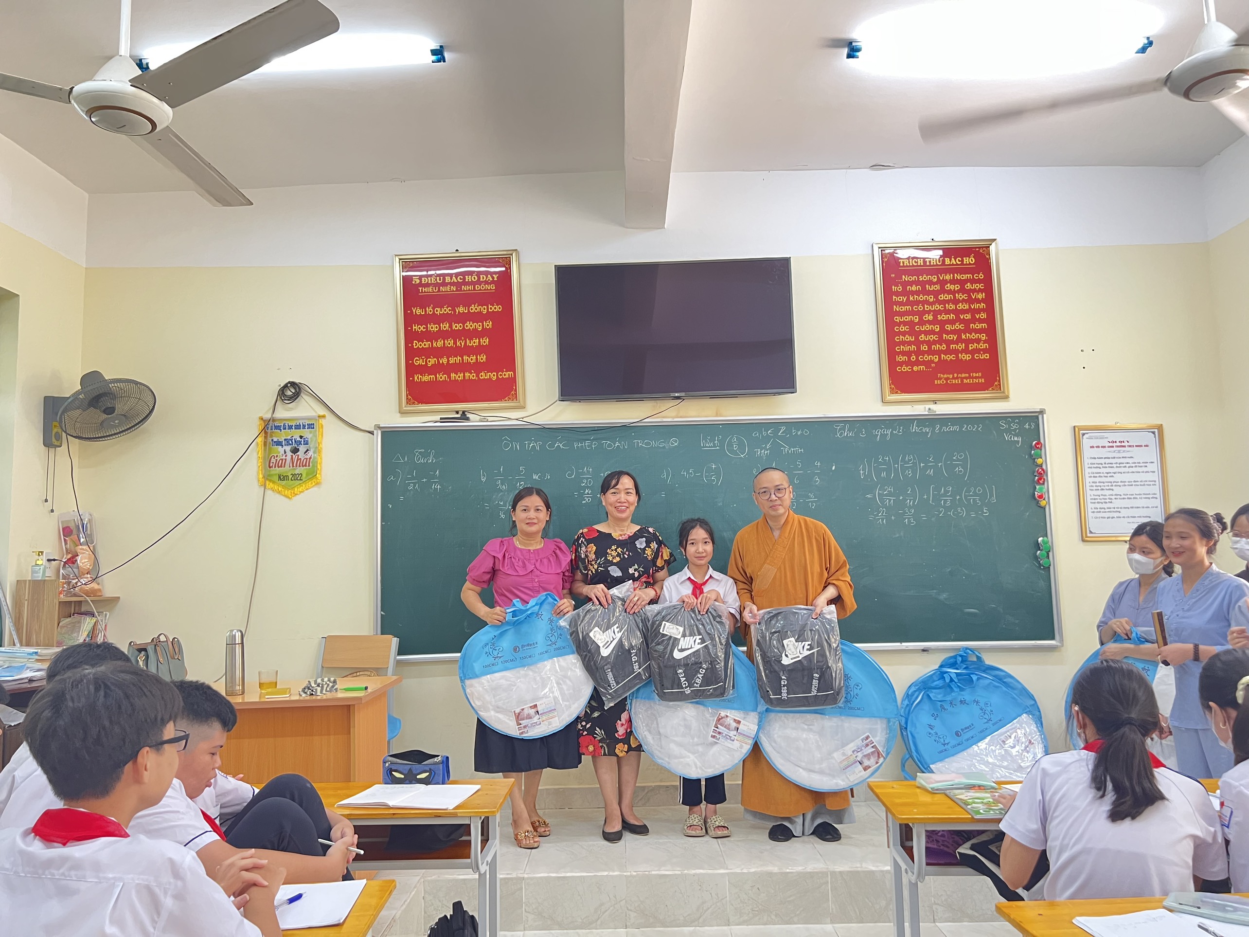 Trên tinh thần Từ bi - Cứu khổ - Ban vui của Đạo Phật, nhân dịp chuẩn bị bước vào năm học mới, Đại đức Thích Giác Hiệu đã trao 10 phần quà cho các em học sinh nghèo vượt khó, mỗi phần quà có giá trị 500 ngàn đồng bao gồm 1 chiếc cặp sách và 1 chiếc màn khung nhằm động viên, khích lệ các cháu học sinh trong học tập.