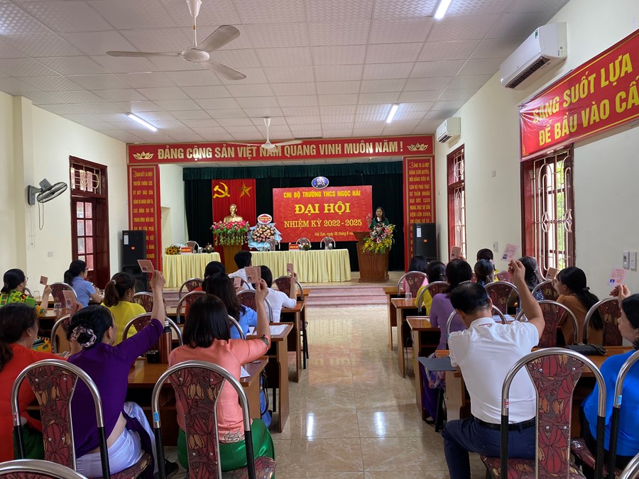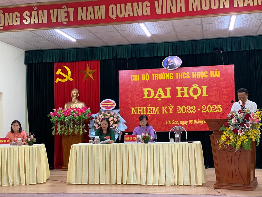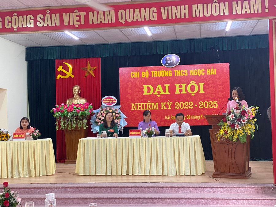 Đại hội chi bộ Trường THCS Ngọc Hải lần thứ XXI, nhiệm kỳ 2022-2025 đã đánh giá, tổng kết hoạt động của chi bộ nhiệm kỳ 2020-2022 và đề ra phương hướng, mục tiêu, nhiệm vụ và các giải pháp cơ bản nhiệm kỳ 2022 -2025.