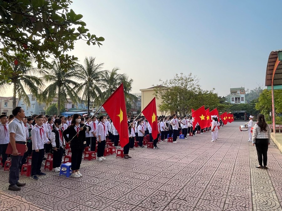 Trong buổi lễ Liên đội biểu dương và khen thưởng tập thể lớp xuất sắc và tấm gương cá nhân thiếu nhi tiêu biểu “Học tập tốt - Rèn luyện chăm”.