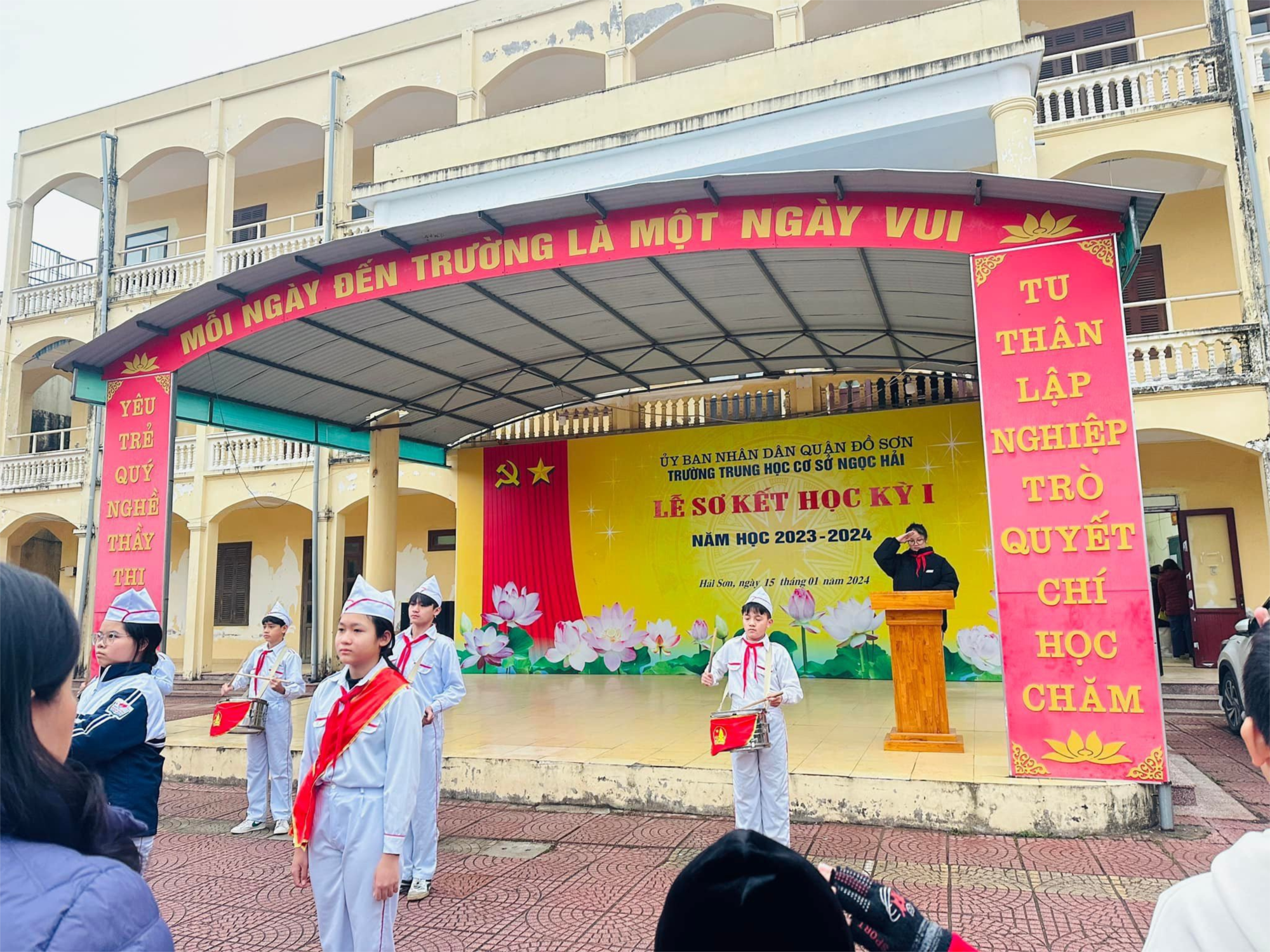 📍 Sau phần chào cờ, tuyên bố lý do giới thiệu đại biểu, bạn Nguyễn Chí Vinh - chi đội 9A lên đọc báo cáo sơ kết học kì I và phương hướng học kỳ II.
