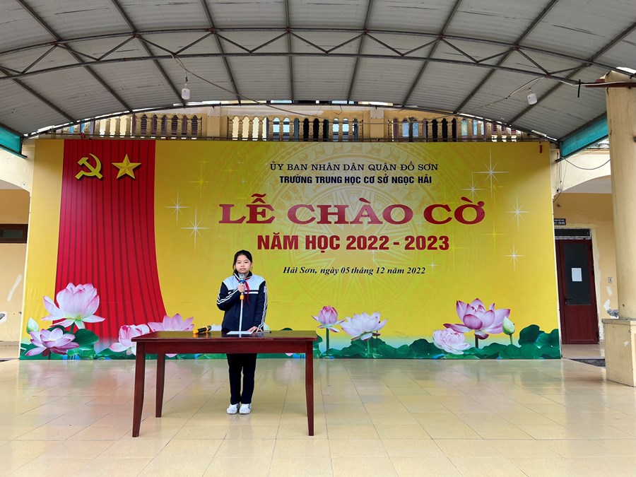 Sáng nay, ngày 5/12/2022 Liên đội trường THCS Ngọc Hải long trọng tổ chức lễ Chào cờ tháng 12 nhằm đánh giá, sơ kết công tác đợt thi thứ I và triển khai kế hoạch đợt thi đua thứ II. Liên đội đã biểu dương và khen thưởng 13 chi đội thực hiện tốt phong trào chi đội 3 tốt. Và trao cờ thi đua cho Chi đội xuất sắc tiêu biểu thực hiện tốt 5 điều Bác Hồ dạy.